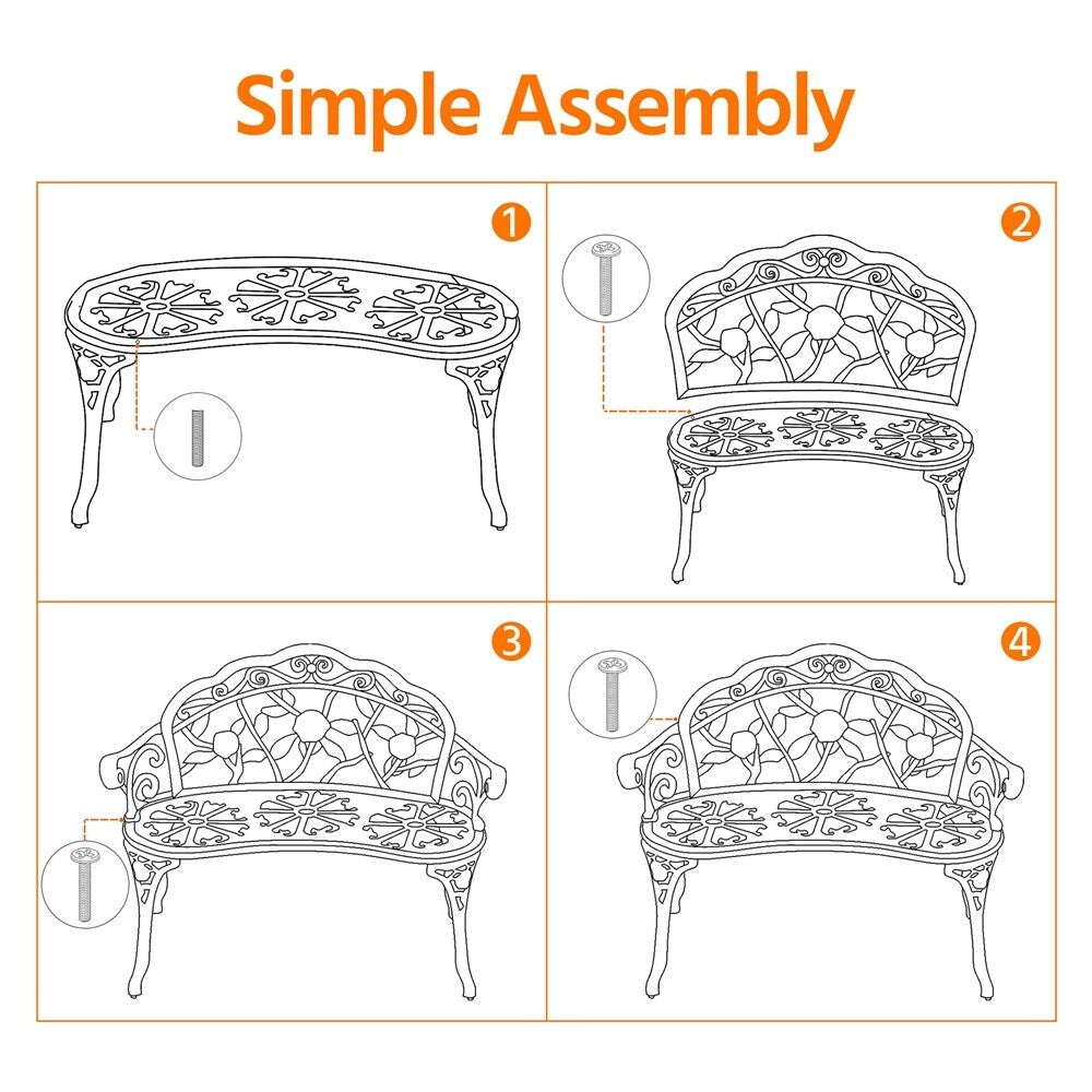 Sûr et pratique : Avec une capacité de charge de 227 kg/500 lb, ce banc d'extérieur en métal est robuste et fiable. Sa conception sans bords assure une assise sûre, avec tous les angles vifs arrondis pour un confort optimal.
