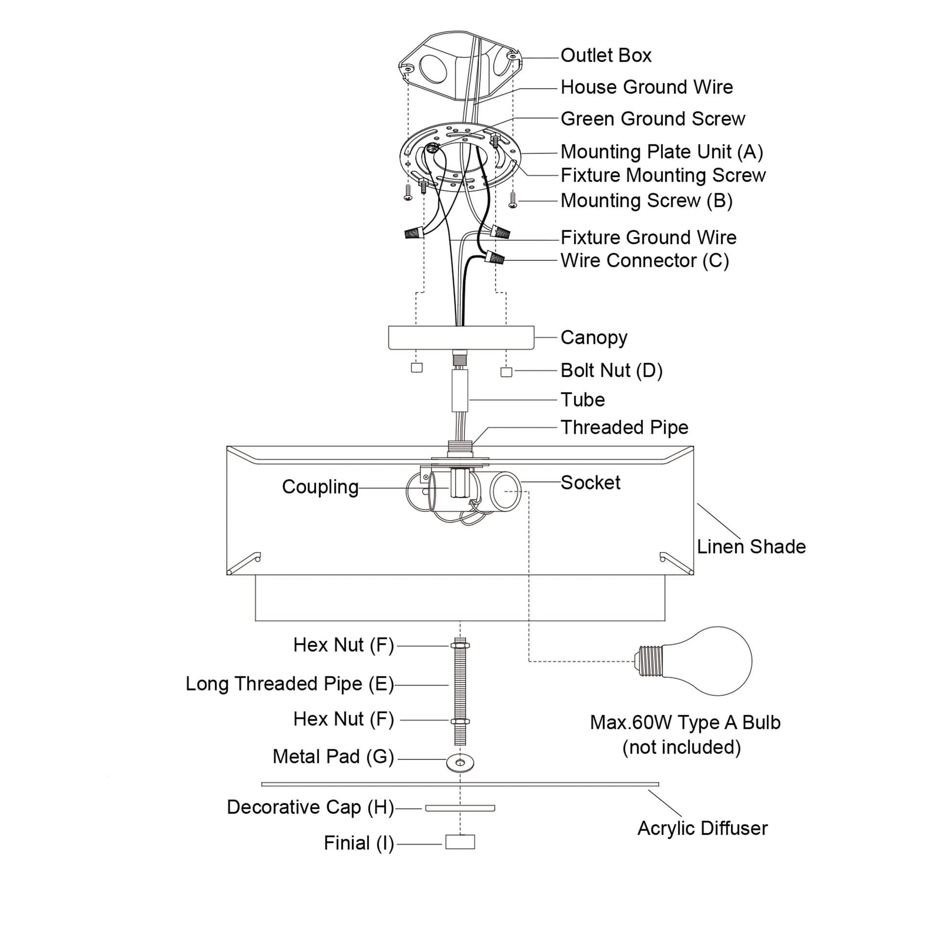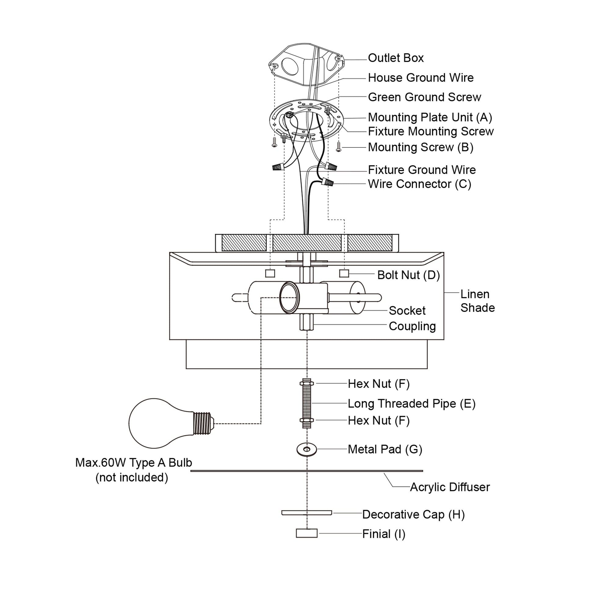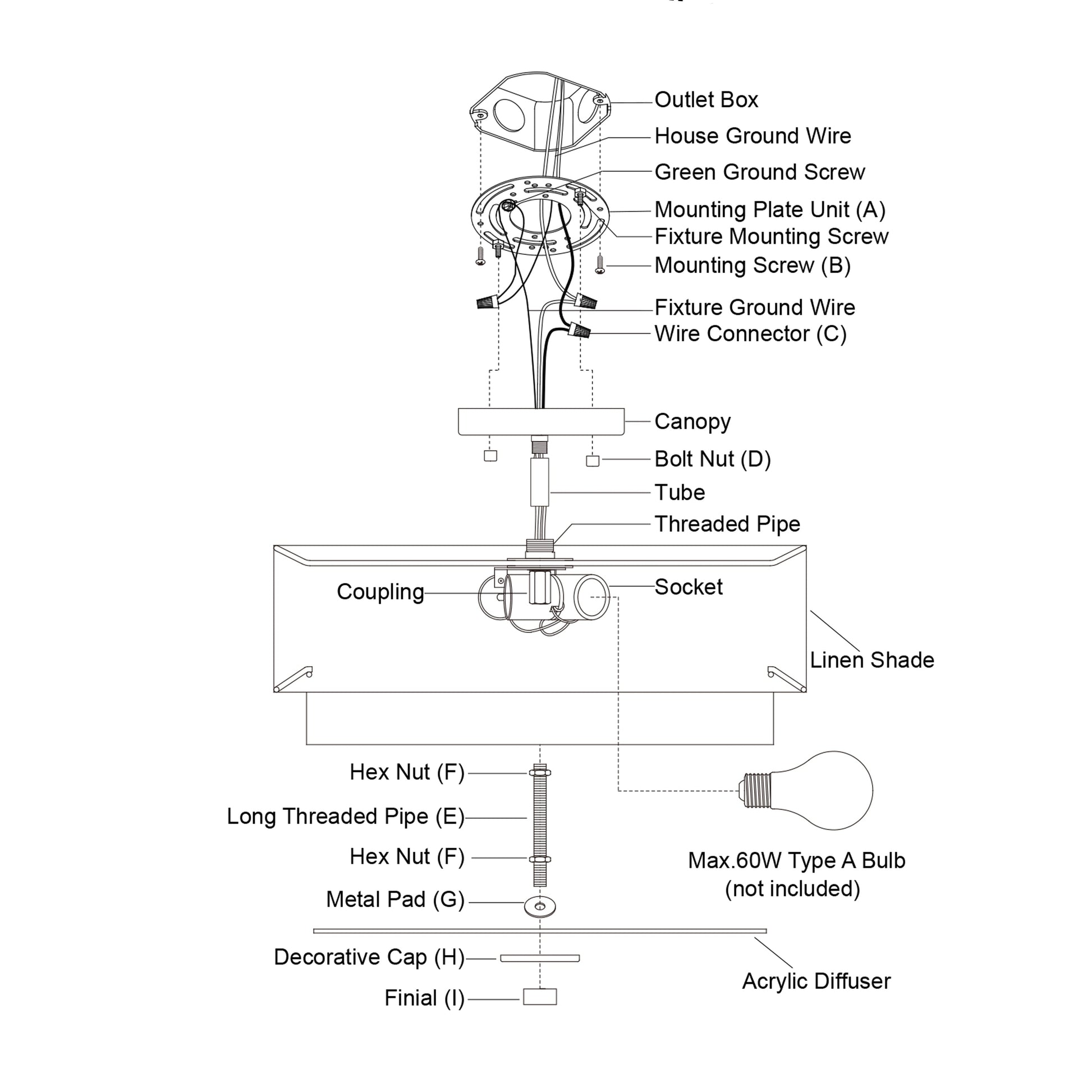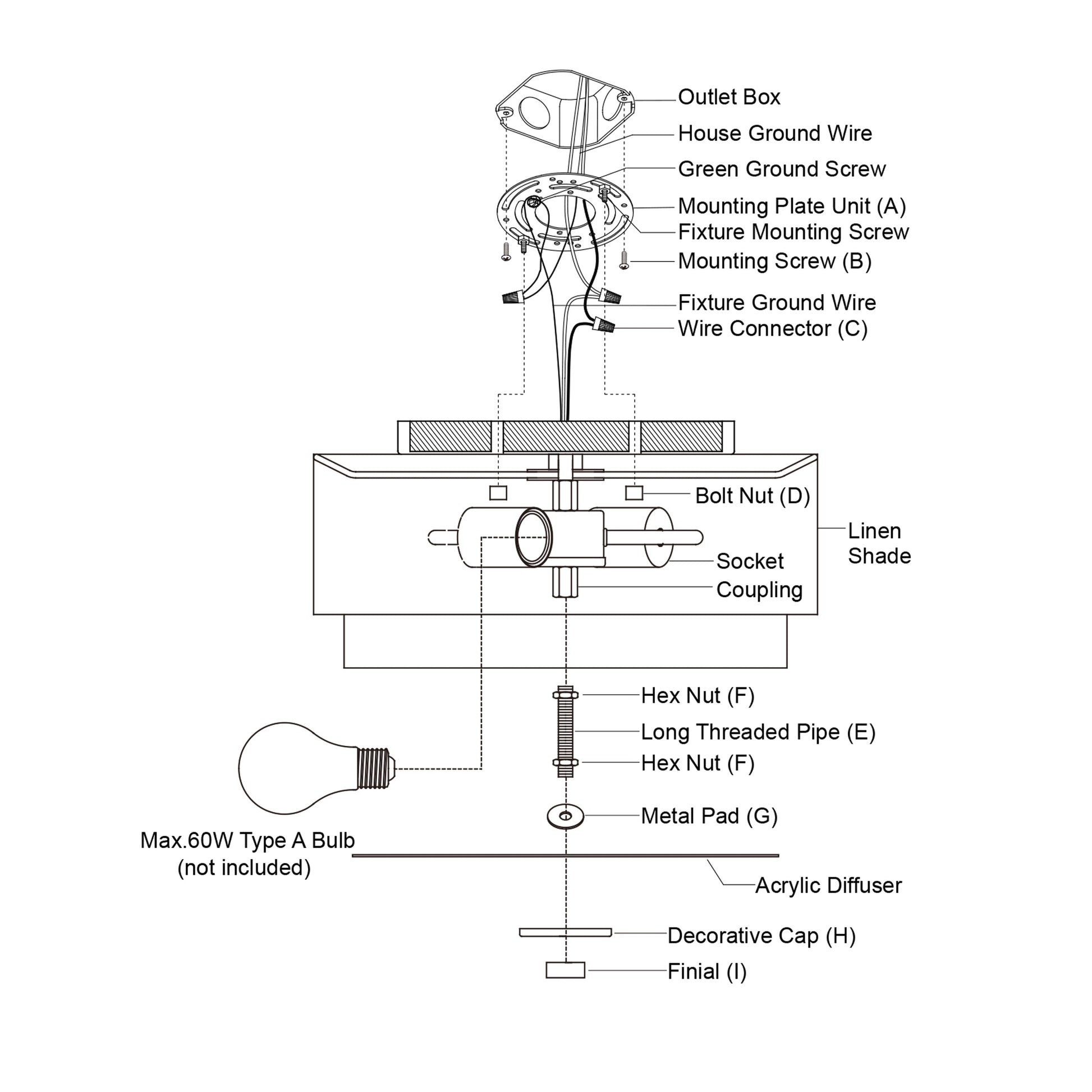 • Utilise des ampoules à culot moyen E26 de 60 watts (non incluses) ; compatible LED
