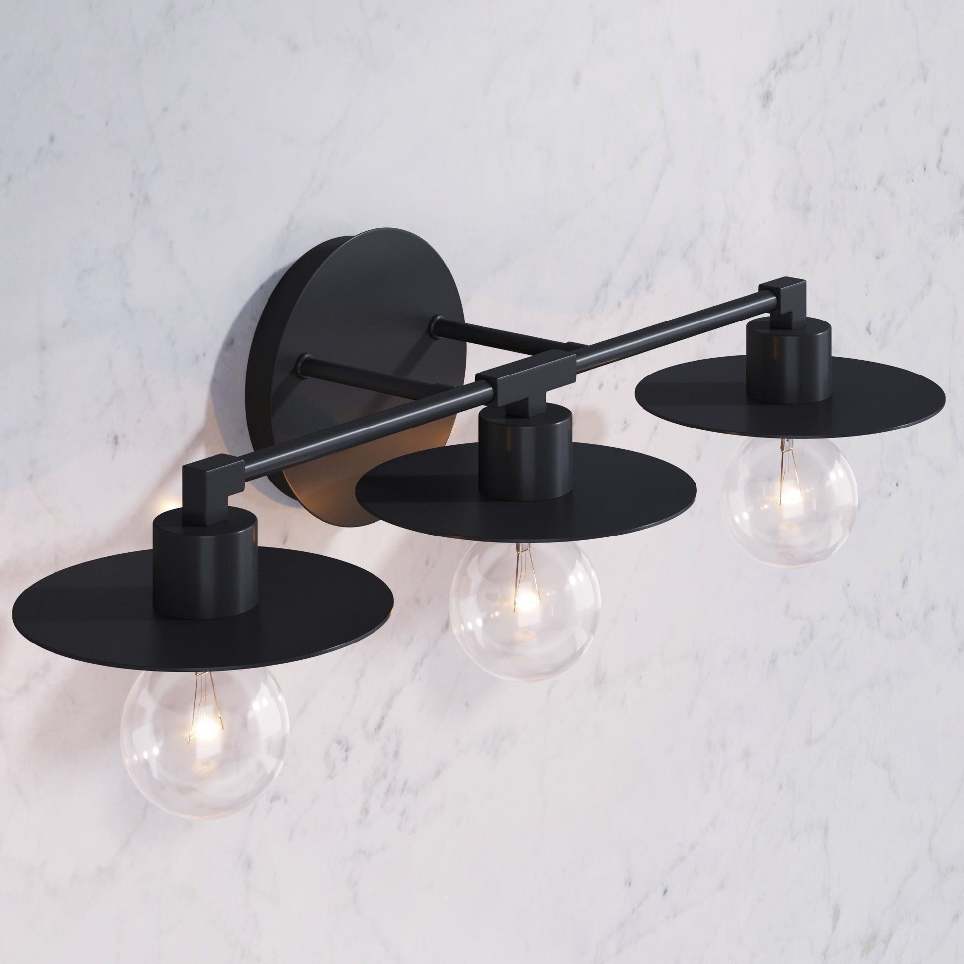 Cette lampe de salle de bain possède 3 lampes que vous pouvez orienter vers le haut ou vers le bas pour plus de polyvalence !