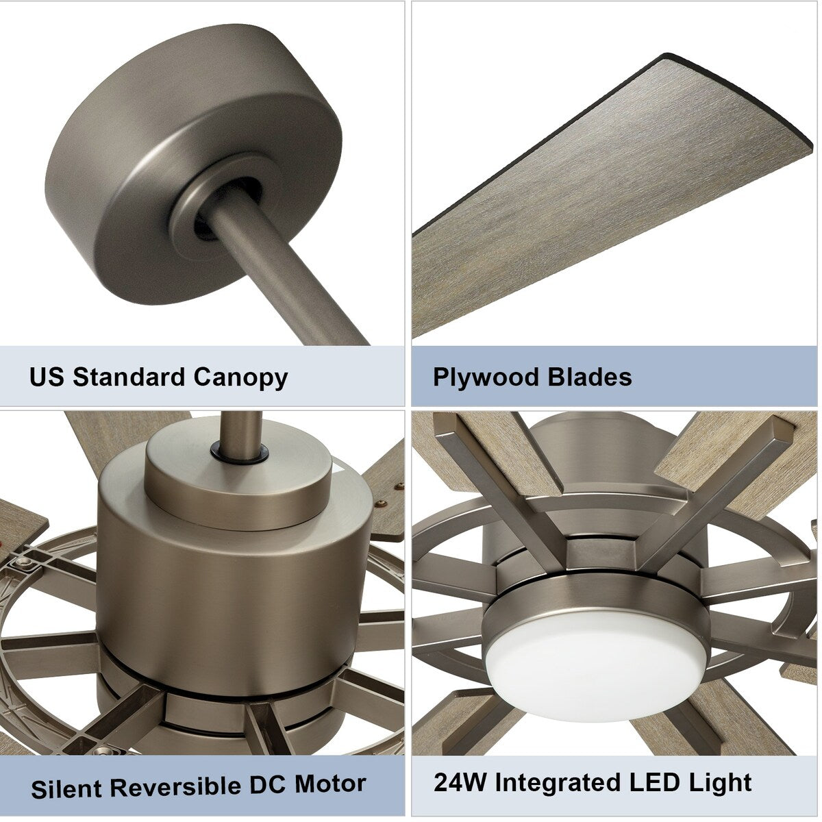 Ventilateur de plafond télécommandé avec éclairage, 8 grandes...