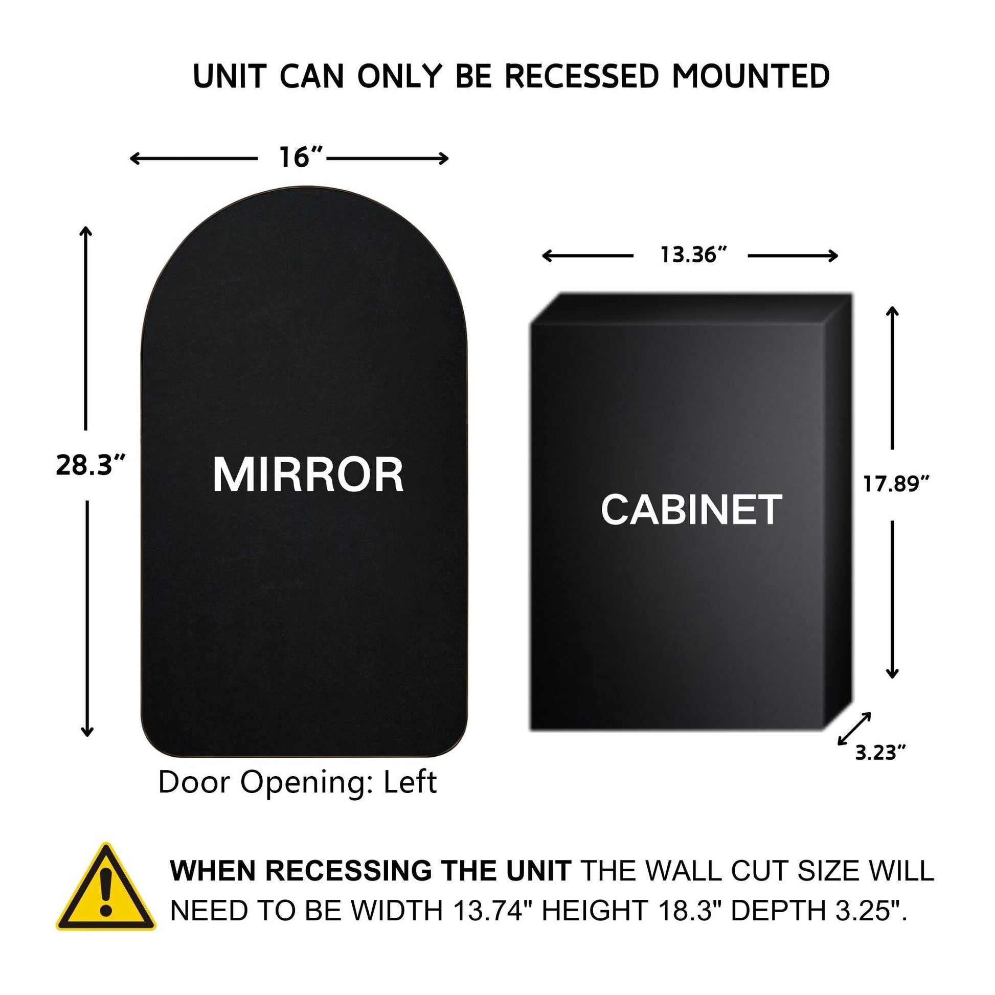 • Metal framed arched medincine cabinets: Premium metal door with matte black finish. Door is coming with self closing hinges.
